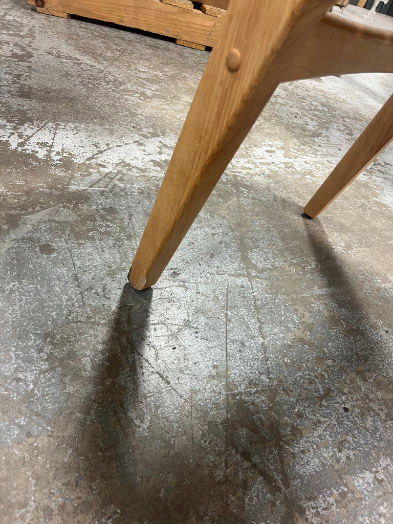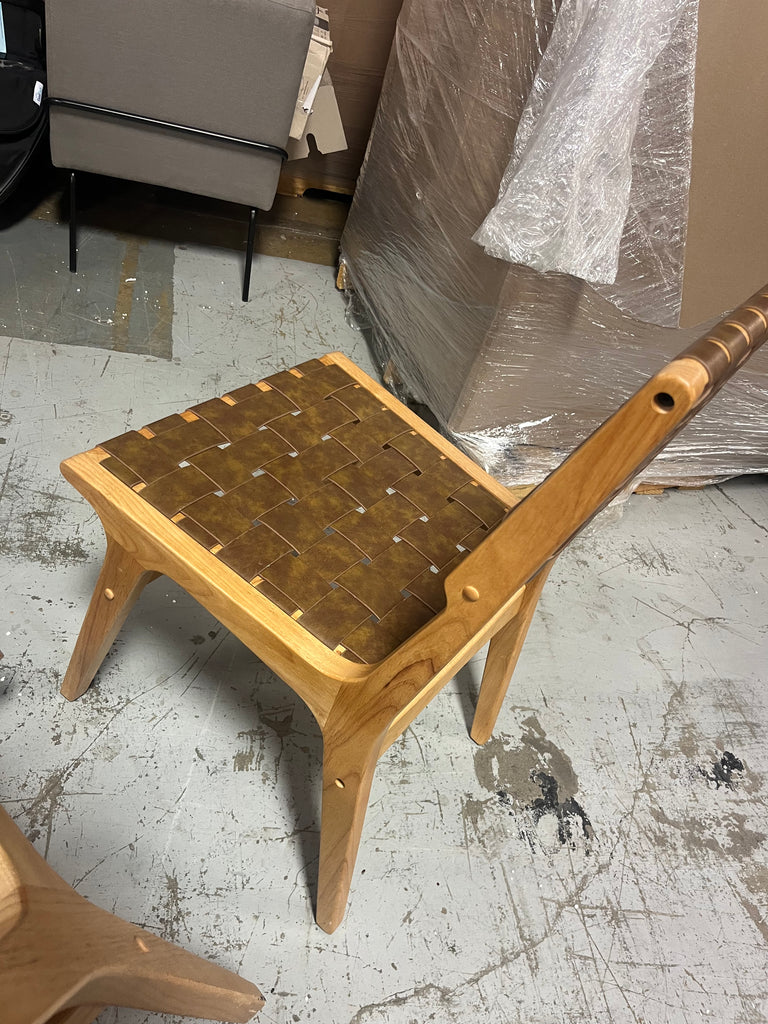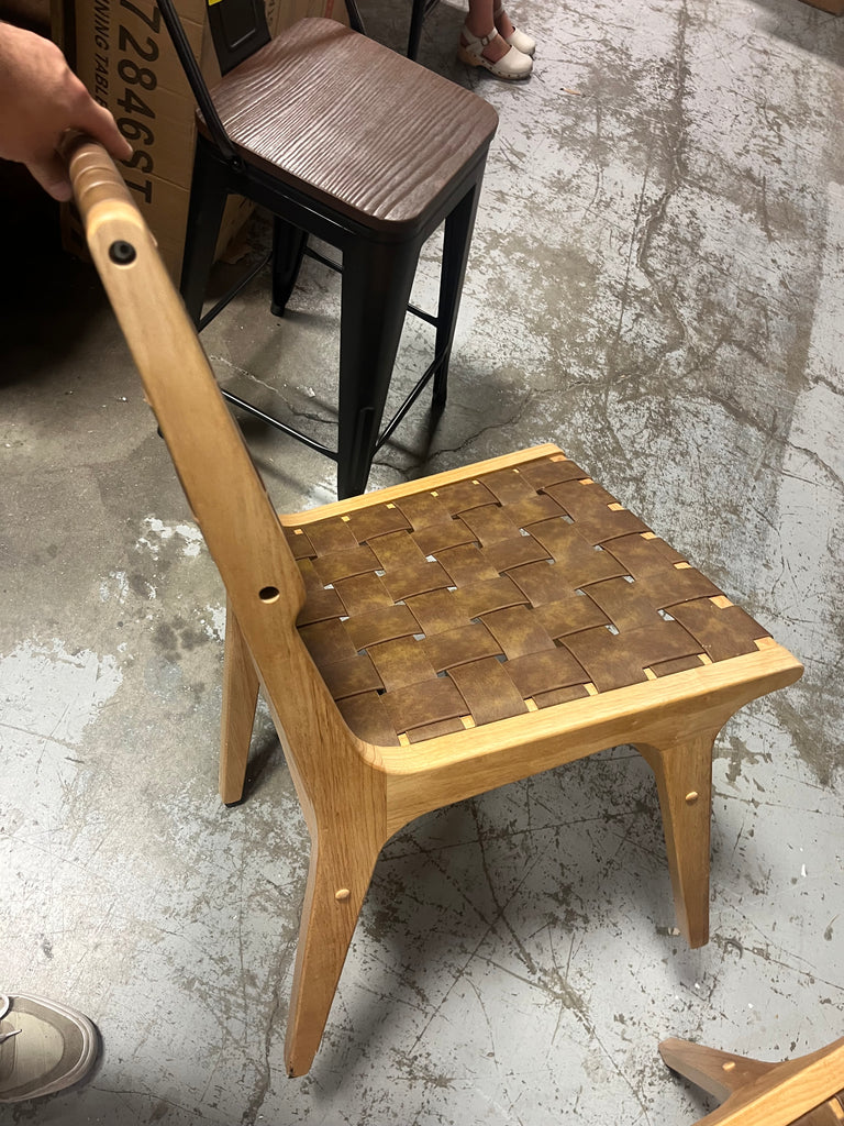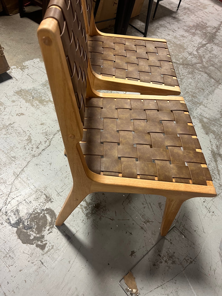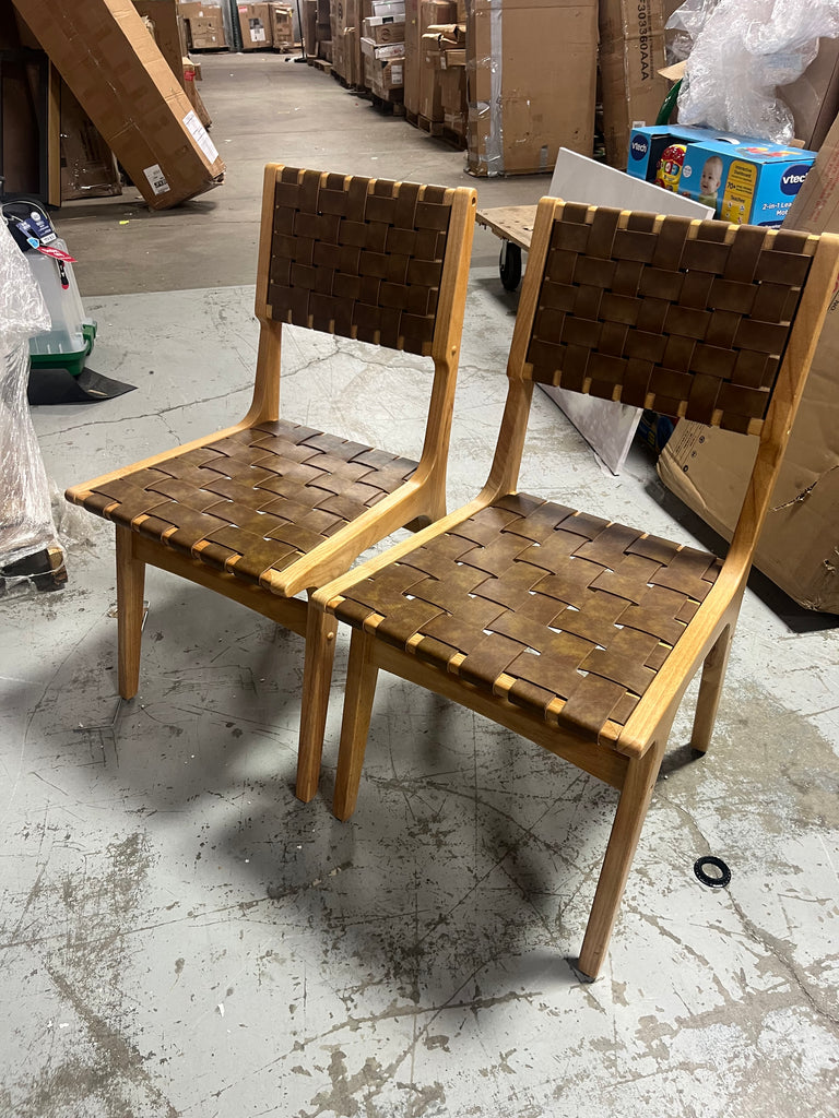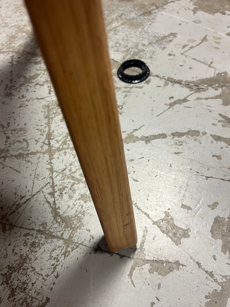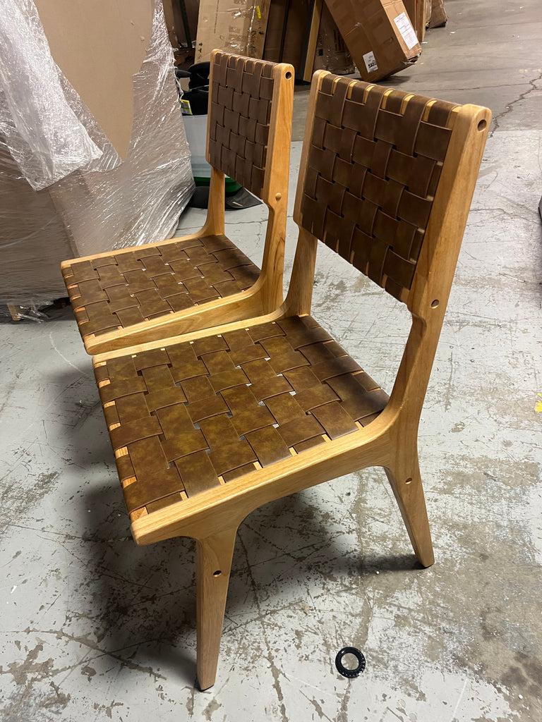 These are fully assembled and have a few missing dowels that cover the screws but can be purchased at ace hardware. Also has a couple of small scratches and a chip on back leg. see in house photos for details.