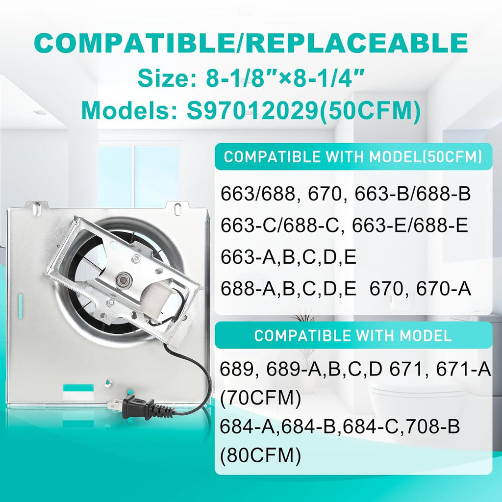 Model: 663/688【Not Fit 688-G/H/J/K】 663B/688B 663C/688C 663E/688E 670, Compatible with Broan 689-A,B,C,D 671-A(70CFM) S97012029