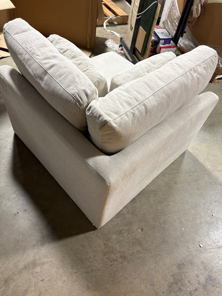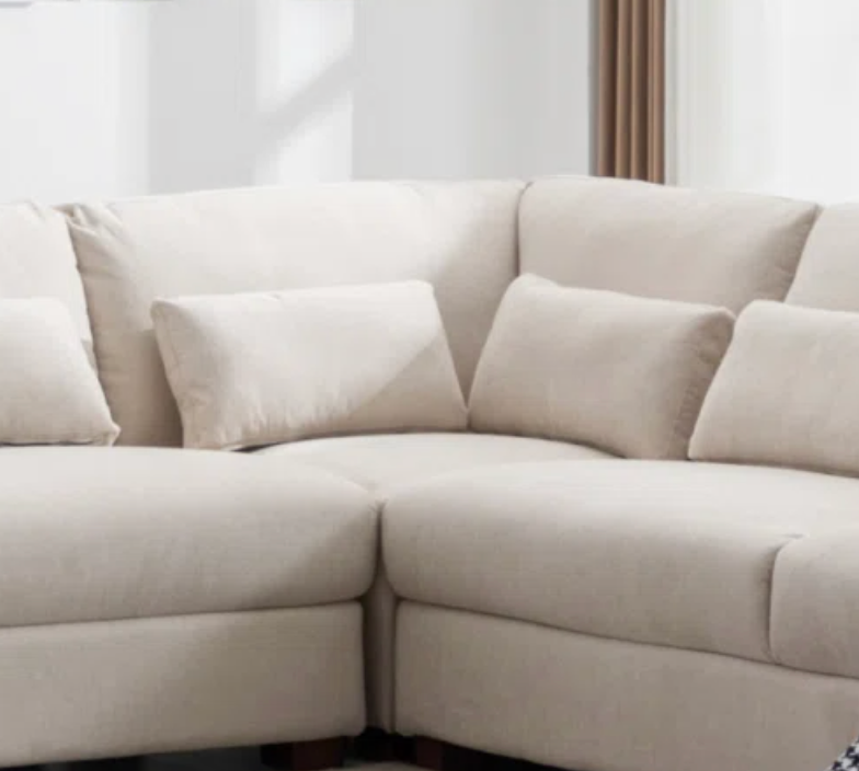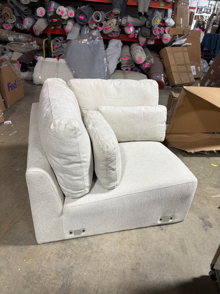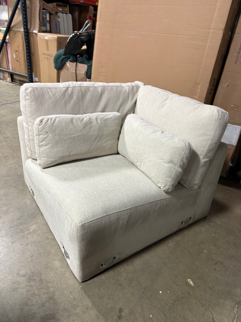 This is for the corner of a well made sectional with two lumbar pillows and dense comfortable seating. There are metal brackets that attached for joining to the rest of the sectional, but these can easily be removed with a screwdriver for a cleaner look. See in house photos for details.