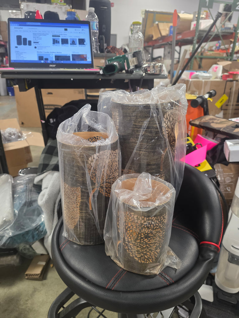 Metal Leaf Decorative Indoor Outdoor Copper Candle Lantern Set