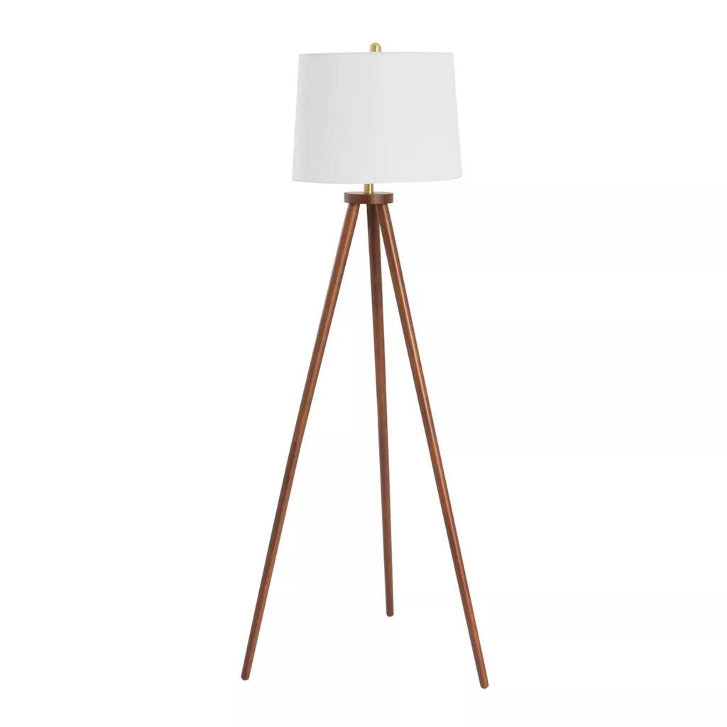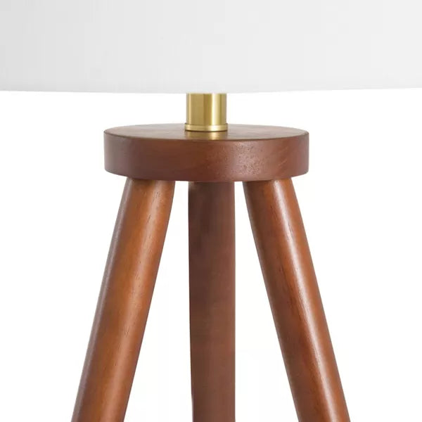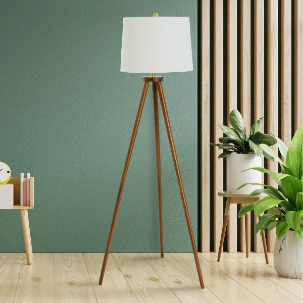 Mid-Century Modern Tripod Wood Floor Lamp with Linen Shade