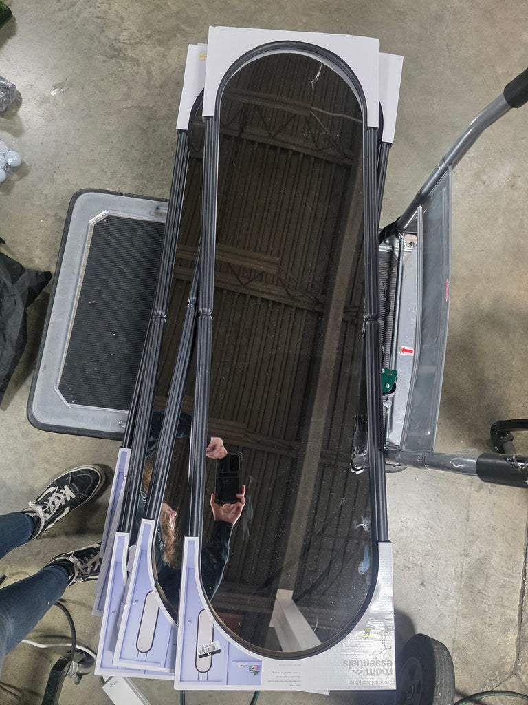 Note: Edges are slightly scuffed. Some marks on the mirror parts as well. See pictures for more details.