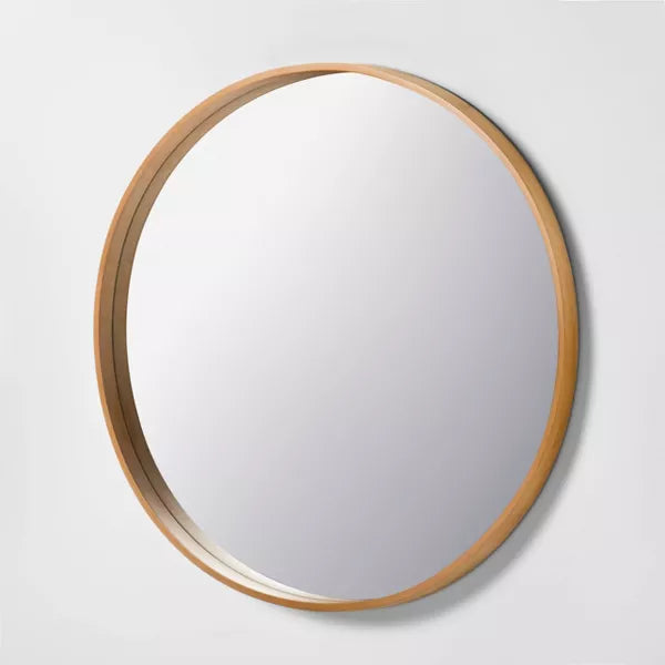 Round Wood Framed Wall Mirror