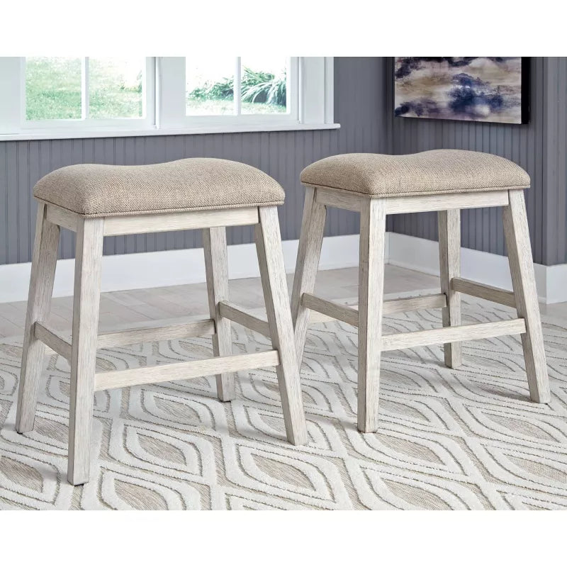 Set of 2 Skempton Upholstered Counter Height Barstools Beige