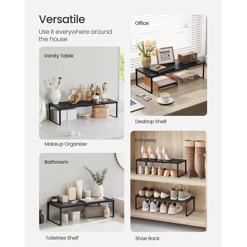 Spice Rack, Expandable Kitchen Countertop Shelf, Matte Black