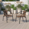 2 Pack Medium Brown Rattan Indoor-Outdoor Restaurant Stack Chair