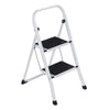 2 Step Ladder Folding Step Stool Sturdy Steel Ladder with Anti-Slip Pedal White