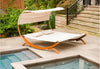 2-Person Medium Brown Wood Outdoor Swing Bed