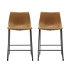 26" Industrial Faux Leather Counter Stool, set of 2- Whiskey Brown