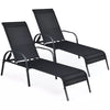 2PCS Outdoor Patio Lounge Chair Chaise Fabric Adjustable Reclining Armrest Black