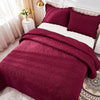 3 Piece Cotton Oversized Bedspread Quilt Set Tmonica - Wine Burgundy - Queen