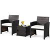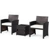 3-Piece Wicker Patio Conversation Set with White Cushions