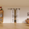 36" x 84" Paneled Glass and Wood Frosted Barn Door with Installation Hardware Kit