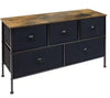 5-Drawer Black Dresser Steel Frame Wood Top Easy Pull Fabric Bins