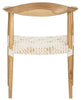 Bandelier Accent Chair Leather Weave Off White Natural Wood Teak 7 MM Cowhide
