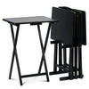 Black Folding TV Tray Tables with Compact Storage Rack, 5 Piece Set
