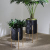 Black Indoor Outdoor Aztec Planters on Metal Stand, (Set of 2)