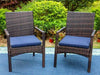 Black Rattan Metal Patio Outdoor Dining Chair with Blue Cushion (2-Pack)