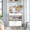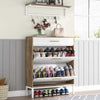 16 Pair Shoe Cabinet & Wall Coat Shelf Set for Entryway - 3-tier - Brown