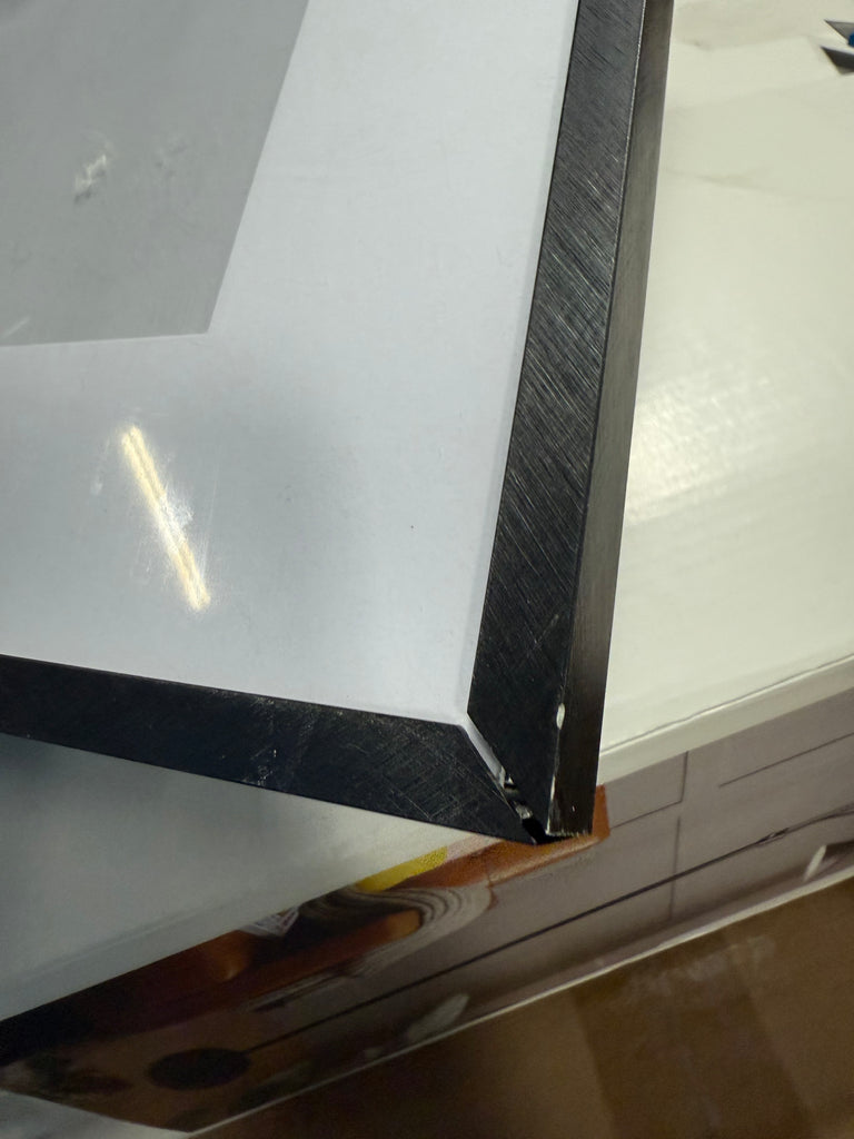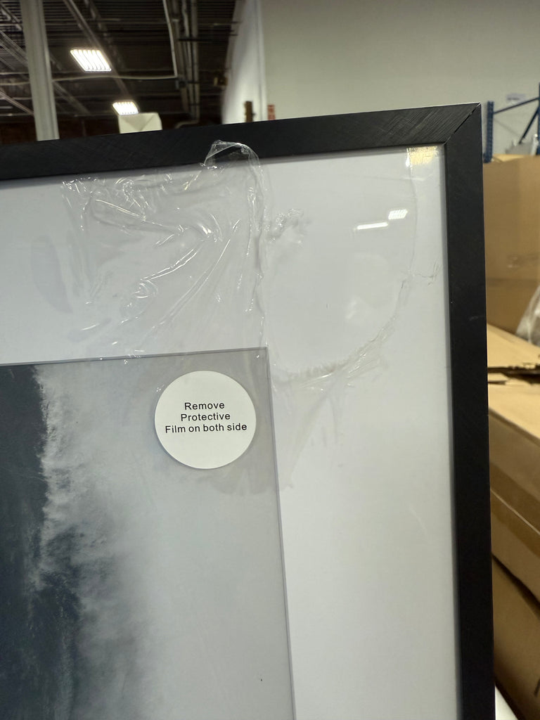 Note: Frame still has protective film on it, has damage to bottom of frame from packaging, has a small crack in center, see photos