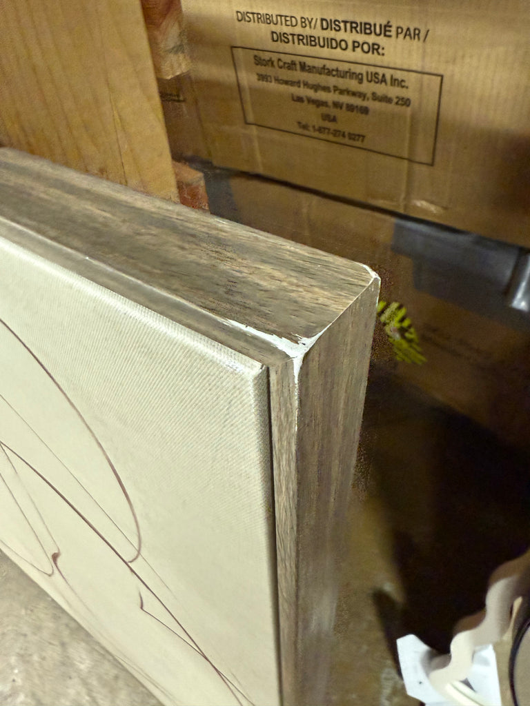 Note: Frame has imperfections to corners, back paper is damaged from packaging, see photos
