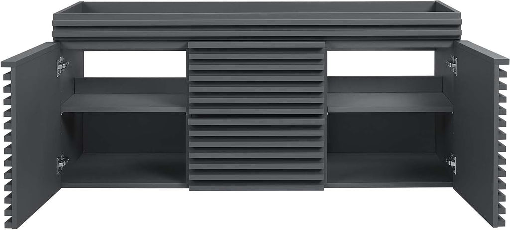 Size: 48" Dose not come with hardware. Missing cabinet doors