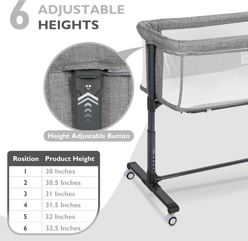 Baby Bassinet, 2 in 1 Portable Newborn Bedside Sleeper, Grey