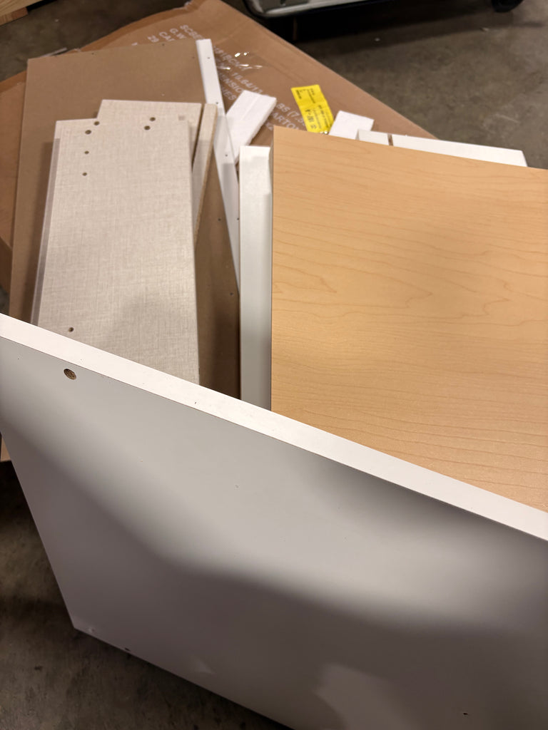 Note: Has a small scuff mark on two panels, and missing 1 nail and 6 hidden cams for hardware. See pictures for details.