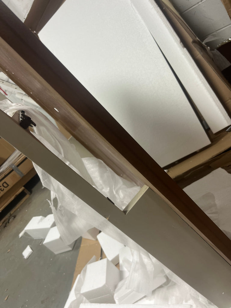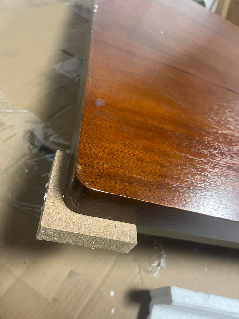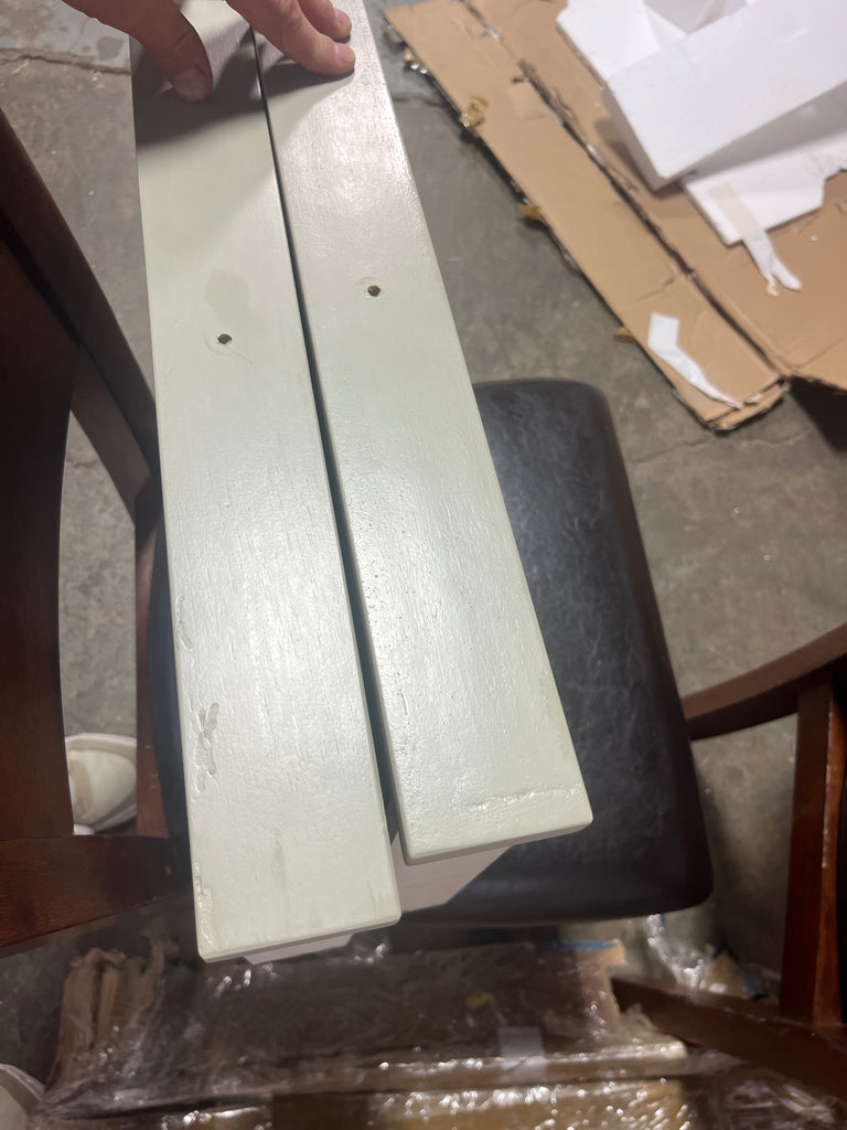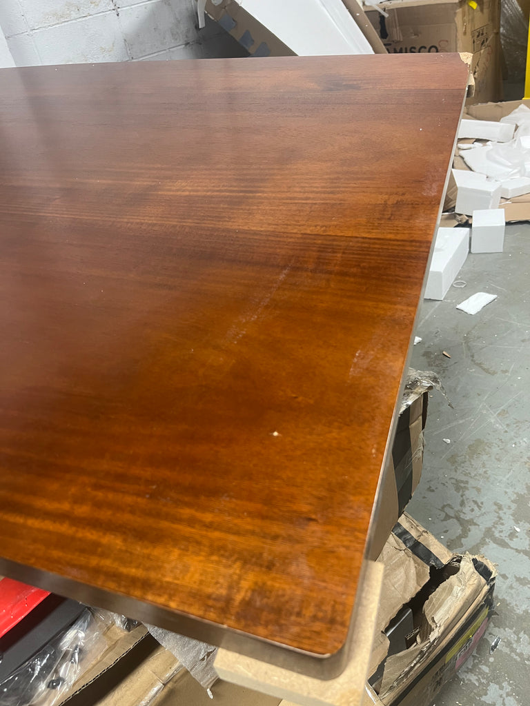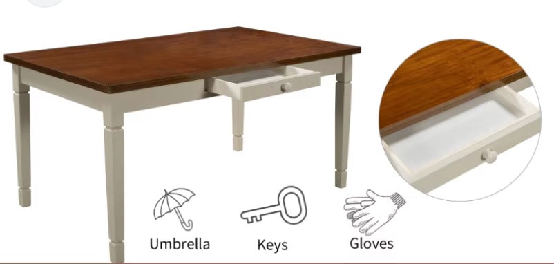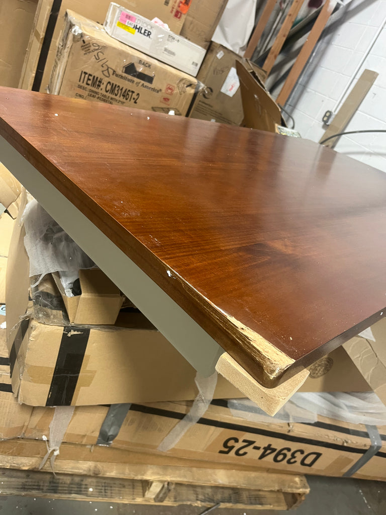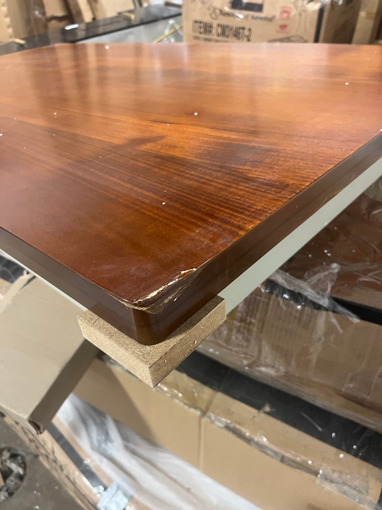 Note: Link is for comparable table. This is for the table only. This table has a drawer on each side and corners of the top are damaged. The drawer faces have damage that have been painted over by manufacturer to be uniform. See in house photos for details and stock photo of actual table. No keys.