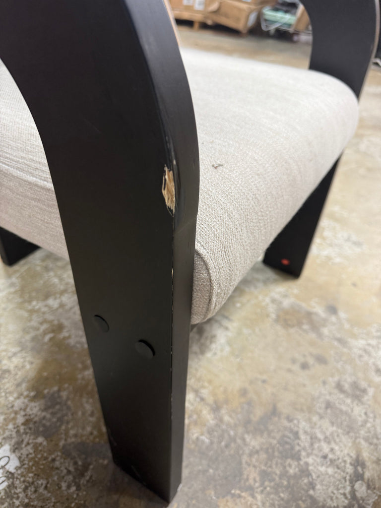 Note: Chair has dirt and debris to seat cushion, has chipped wood to legs, also missing top cushion, see in house photos