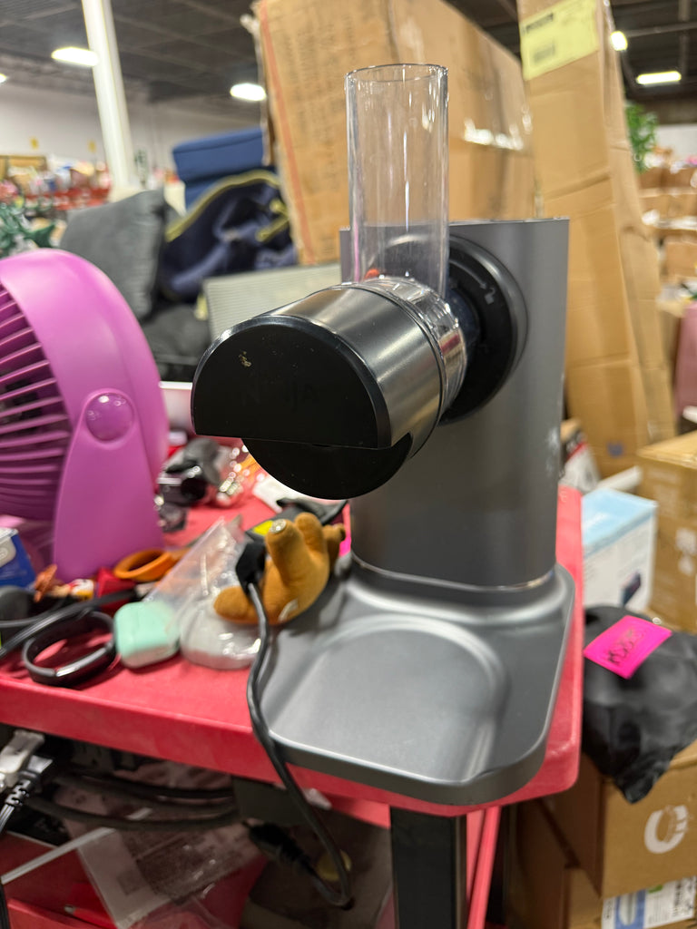 Note: Tested and turns on, missing top black piece, also missing juice jug or pulp container, has scratches to body, see photos