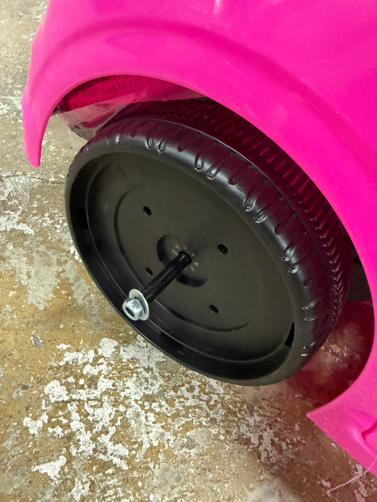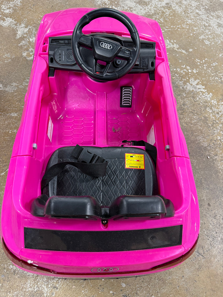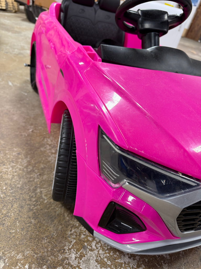 Note: Car doesn't come with charger, cannot test in warehouse, if inop customer has 7 days to return, doesn't come with windows or rearview mirrors, has debris inside car from storaging, missing a hub cap, driver back wheel needs resecured, bumper is in plastic under car, see photos
