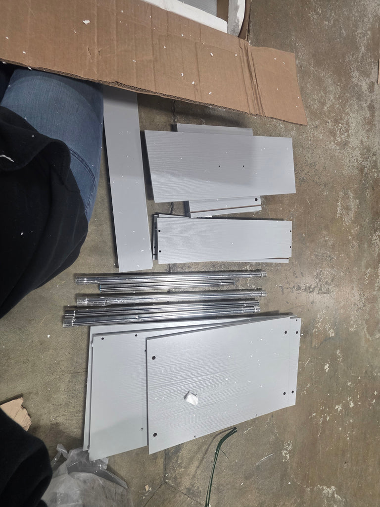 Note: Comparison Link used. The cabinet being sold is the exact same style just in grey. Missing a few of the drawer roller pieces. Has everything else. See pictures for more details.
