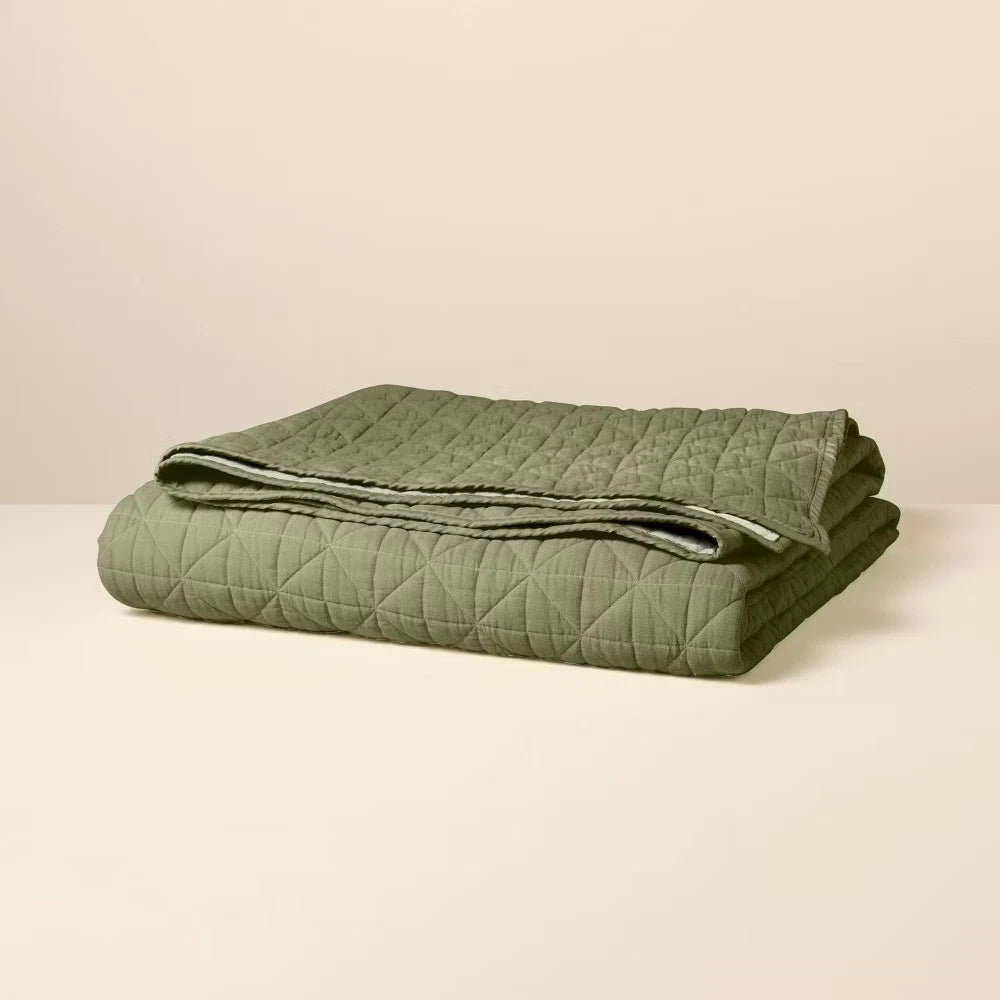 Full/Queen Reversible Lightweight Quilt Tonal Green