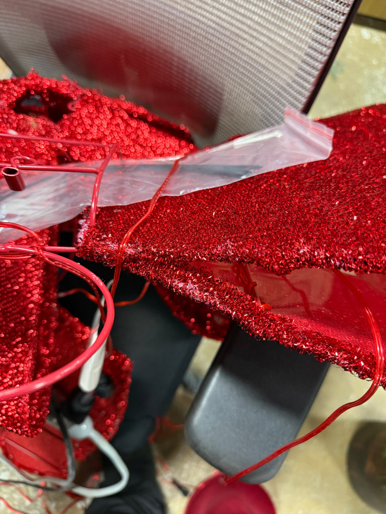 Lighted Christmas Tinsel Doorway Arch with Removable Bow for Roof Door Fireplace