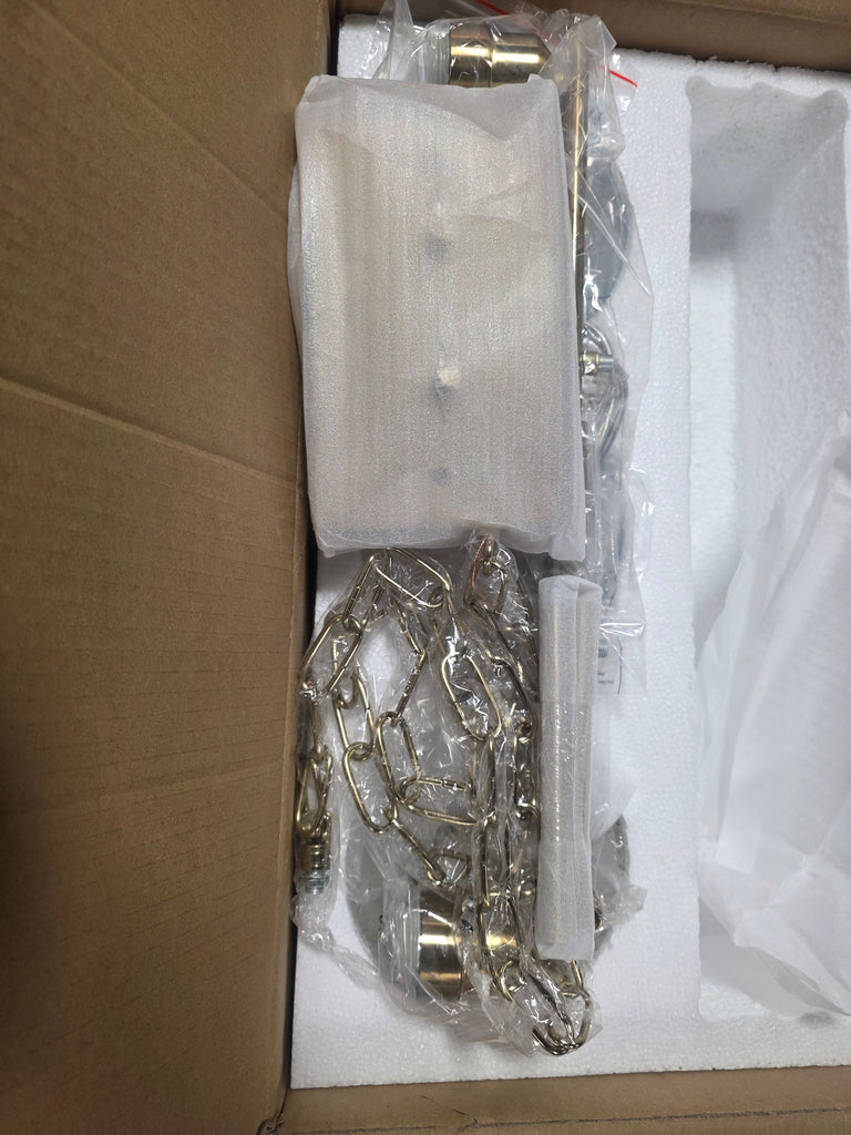 Note: Comparison Link used. Similar chandelier is being sold just not exact. One being sold is discontinued. Cannot be tested due to hardwiring requirements. 7 days to return if it does not function. See pictures for more details.