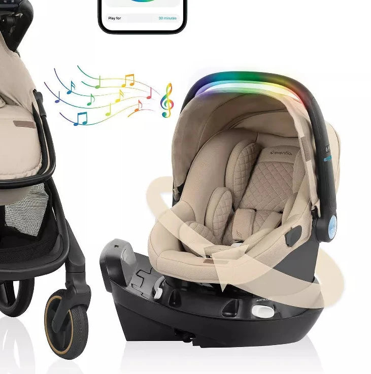 Note: Has light stains to seat cushion, has some scuffs to handle, audio does play, just seat no base see photos