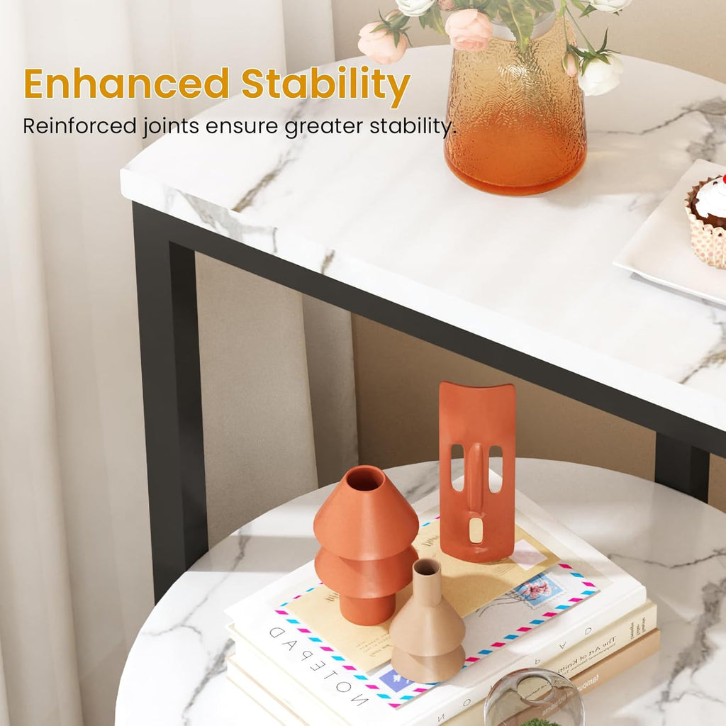 White and Black End Tables Set of 2, Round Marble Nightstand Set