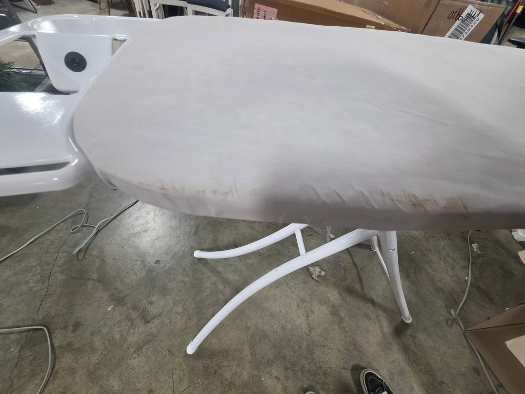 Note: The fabric has some light staining and legs have some scratching. See pictures for more details.