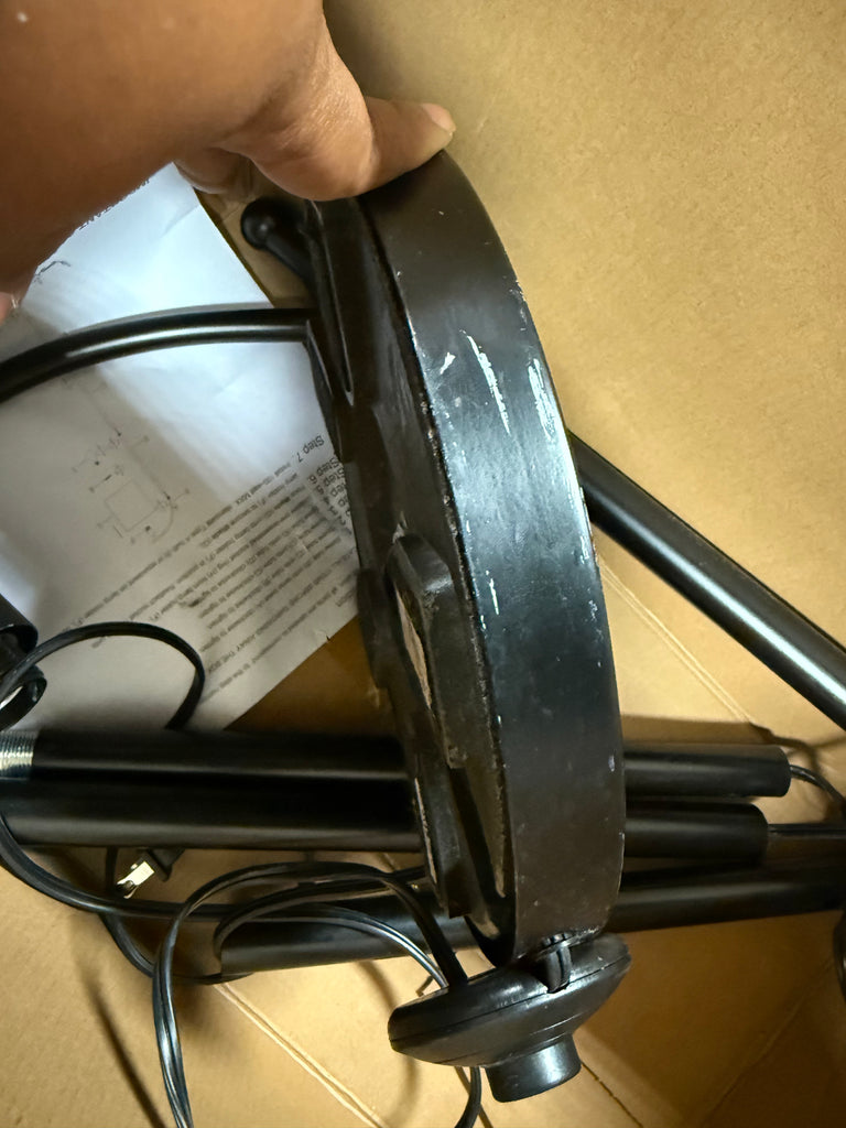 Note: Lamp doesn't come with shade, has sticky residue to pole and scratches and dents to base from packaging, see photo