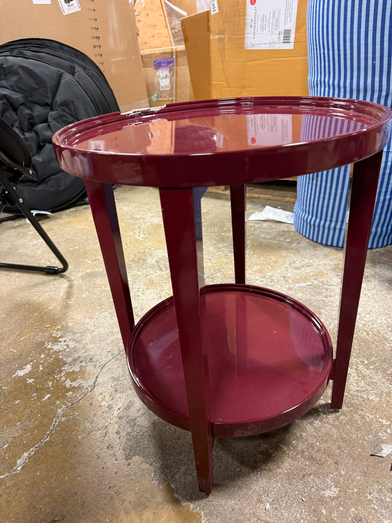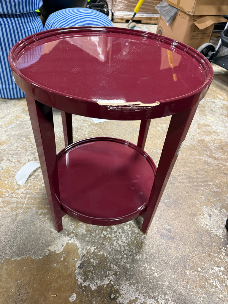 Note: Has a chunk of wood missing on one side from packaging, table also wobbles, see photos