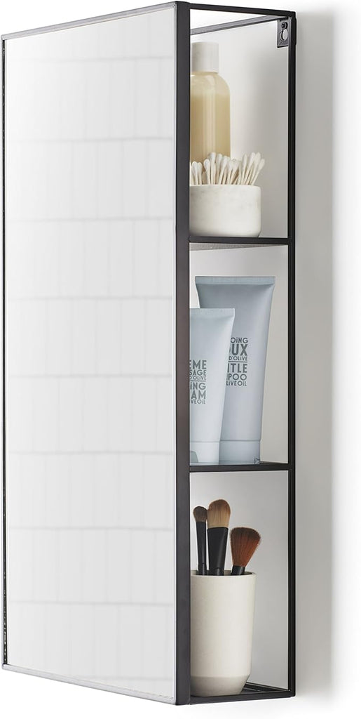 24x12" Rectangular Black Metal Bathroom Mirror Storage Cabinet SHOWROOM ITEM