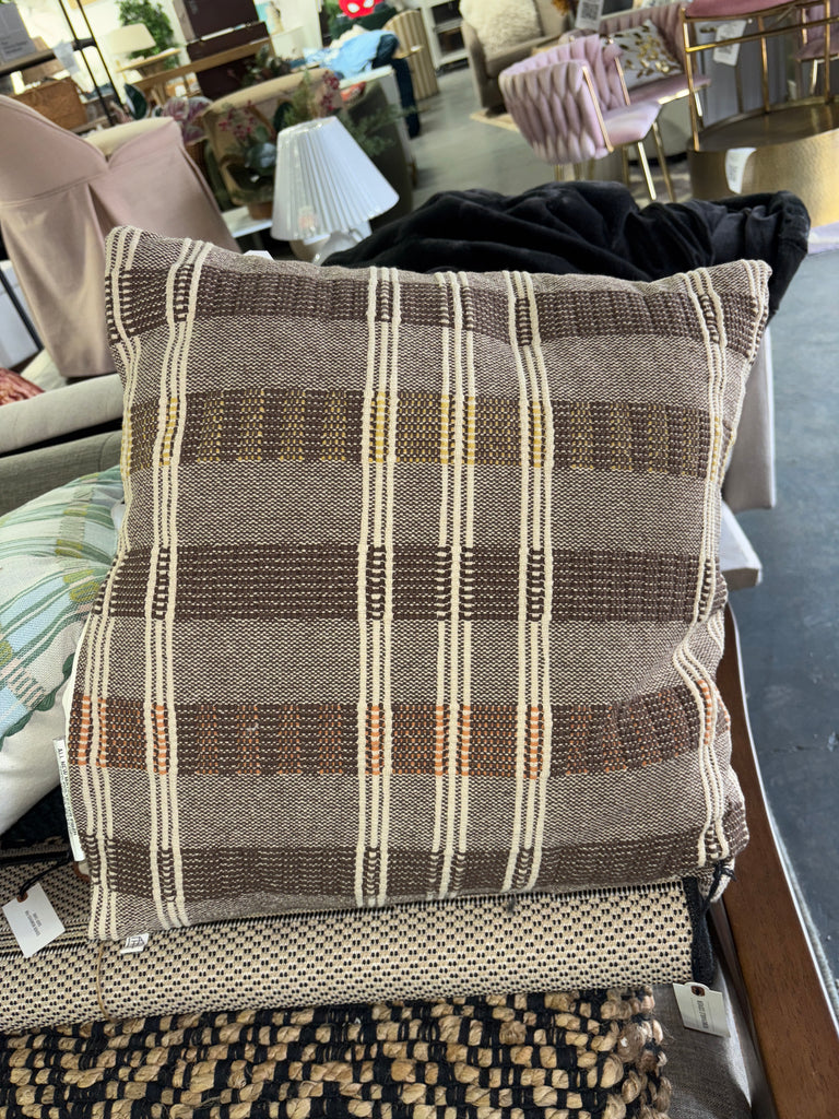 24"x24" Stripe Square Toss Pillow Brown/Tan SHOWROOM ITEM
