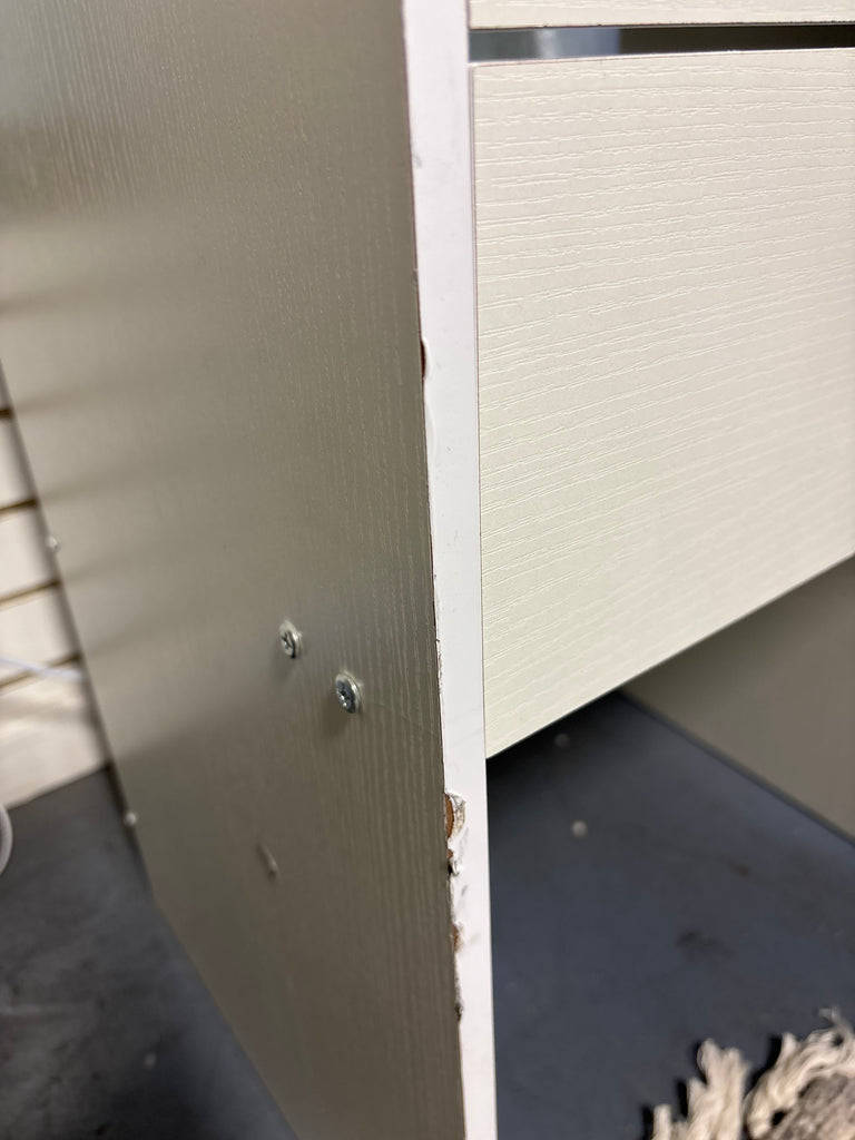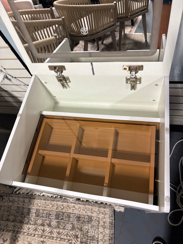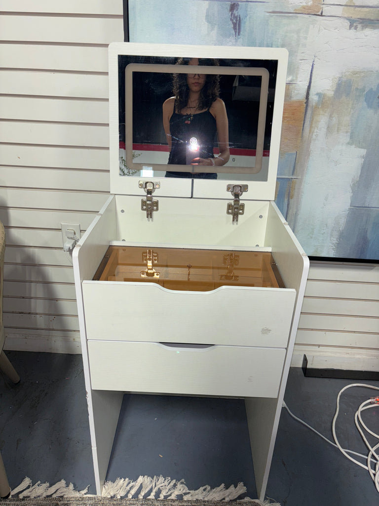 Note: Item has damages and is missing the bottom drawers/stool. Mirror has some scratches. See pictures for details.
