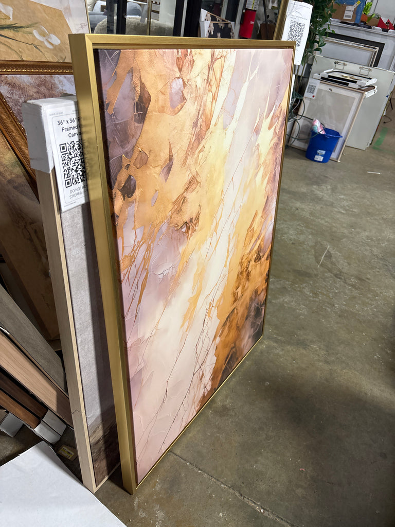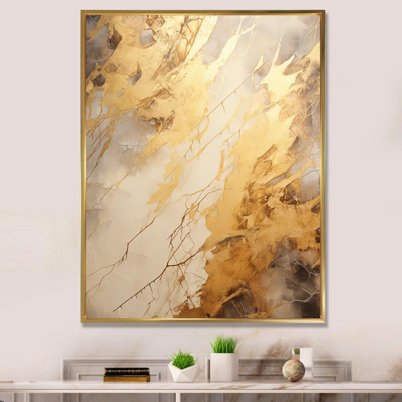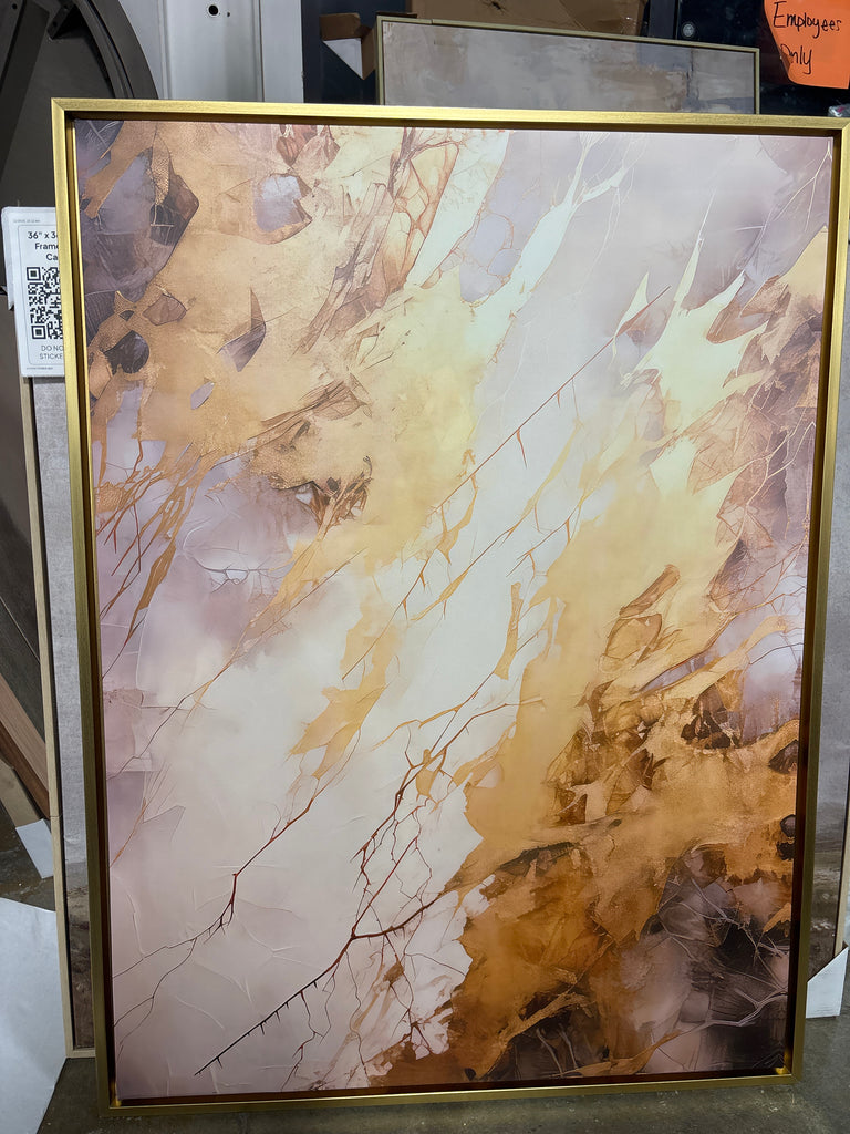30"x40" " Beige And Gold Marble Lightning V " SHOWROOM ITEM