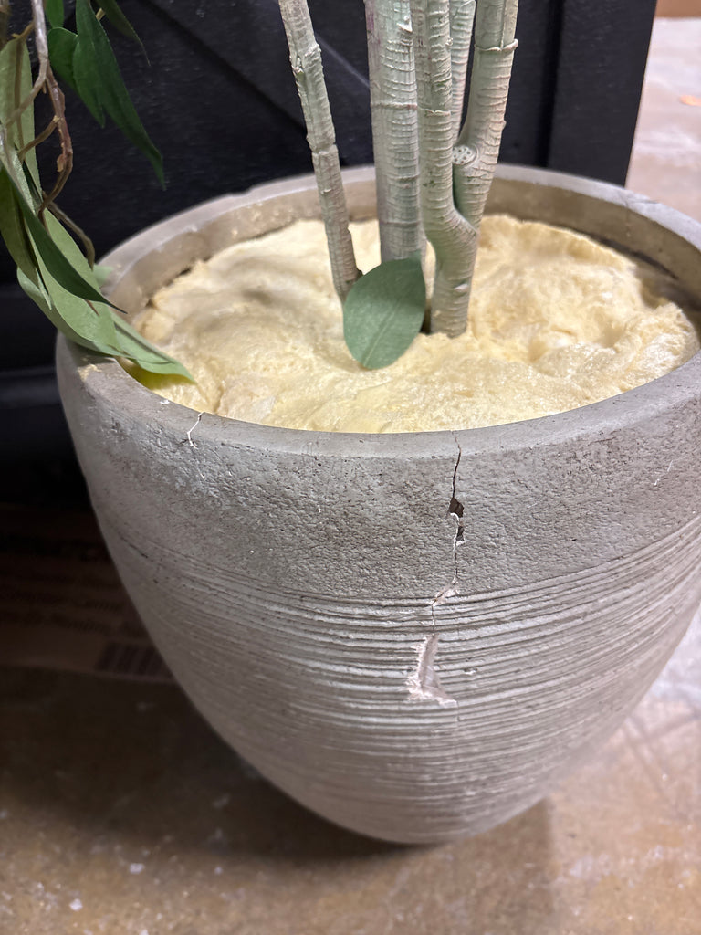 Note: Item is missing decorative rocks in pot and just has yellow foam. Pot has cracks in it. See pictures for details.