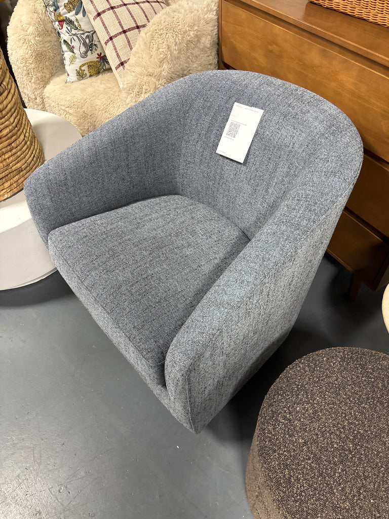 Bennett Upholstered Swivel Barrel Chair - Dark Grey Tweed SHOWROOM ITEM