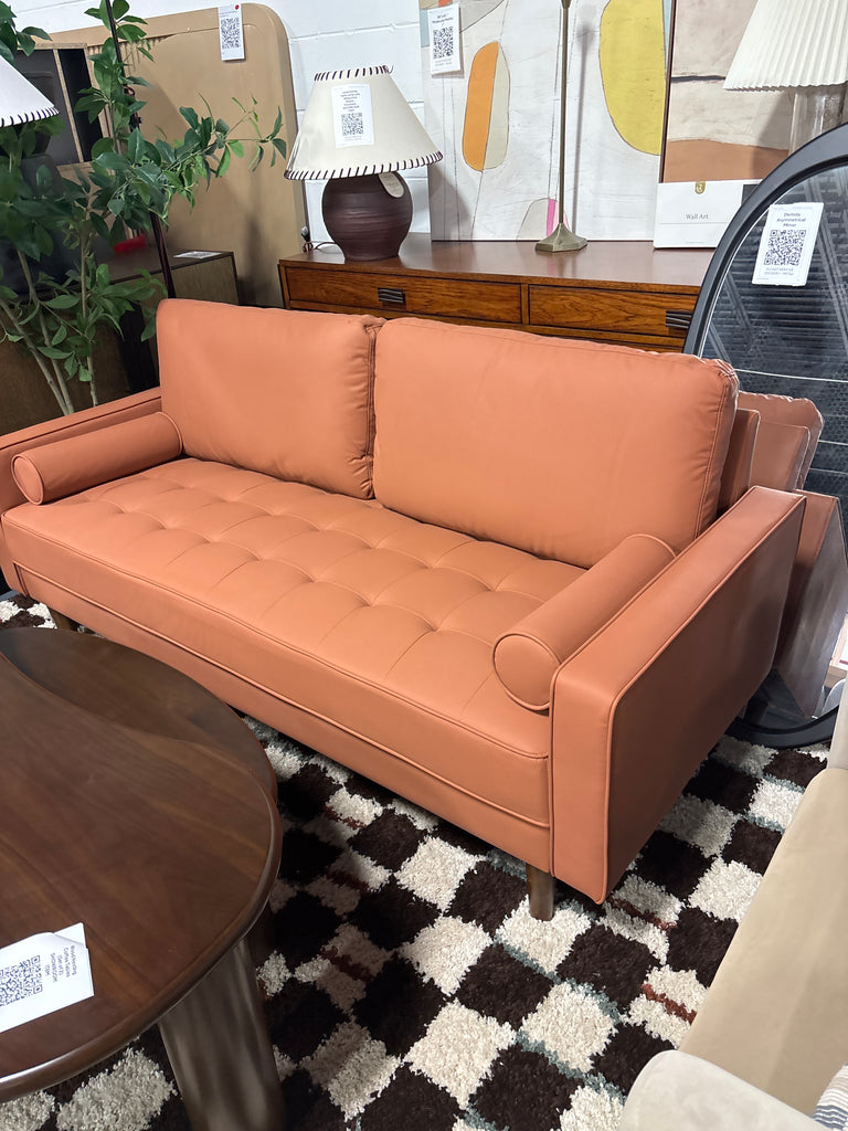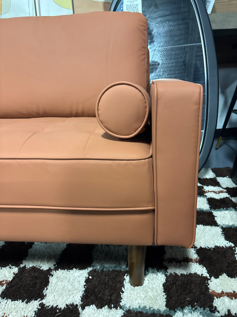 Bridgeview 70" Square Arm Sofa - Brown Faux Leather SHOWROOM ITEM
