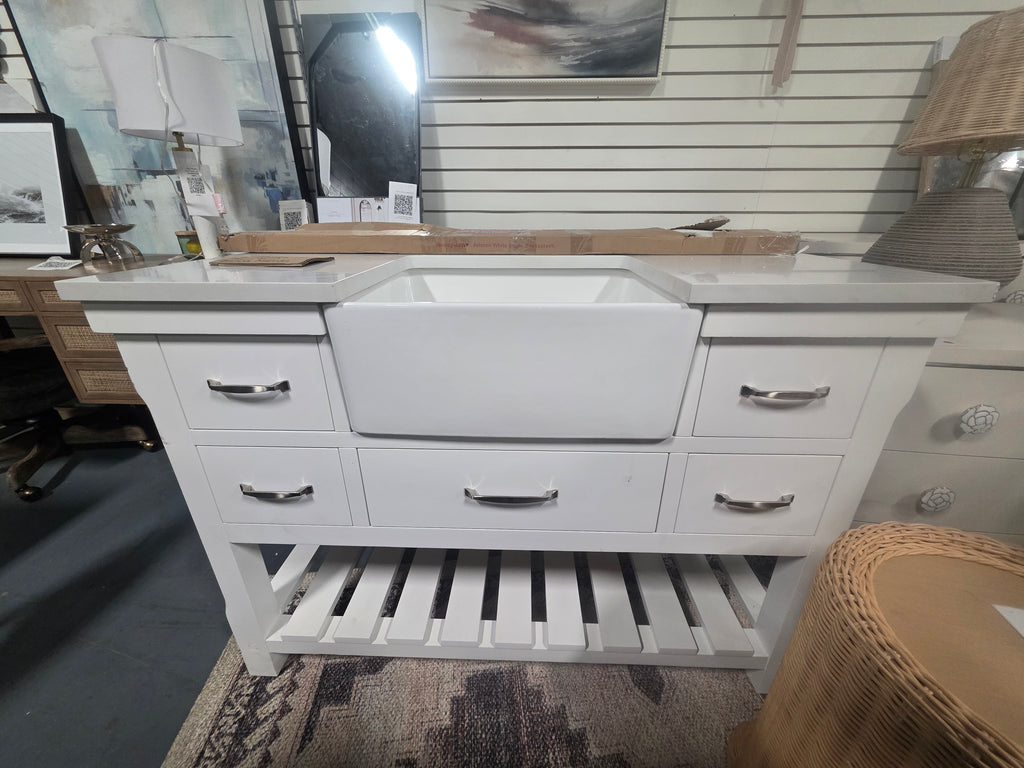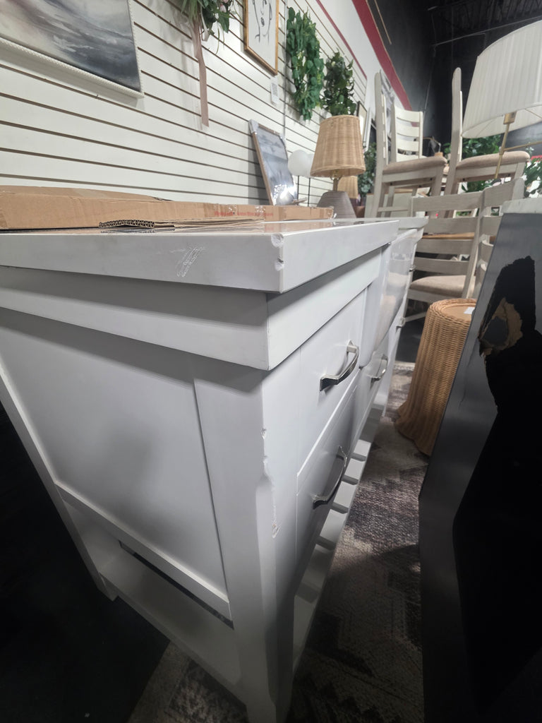 Note: Some light scratching and marks on the left side of the vanity. Backsplash is broken. See pictures for more details.