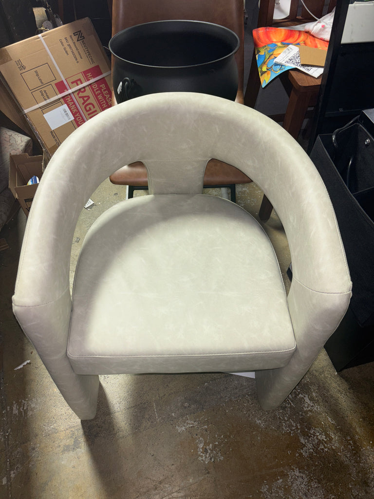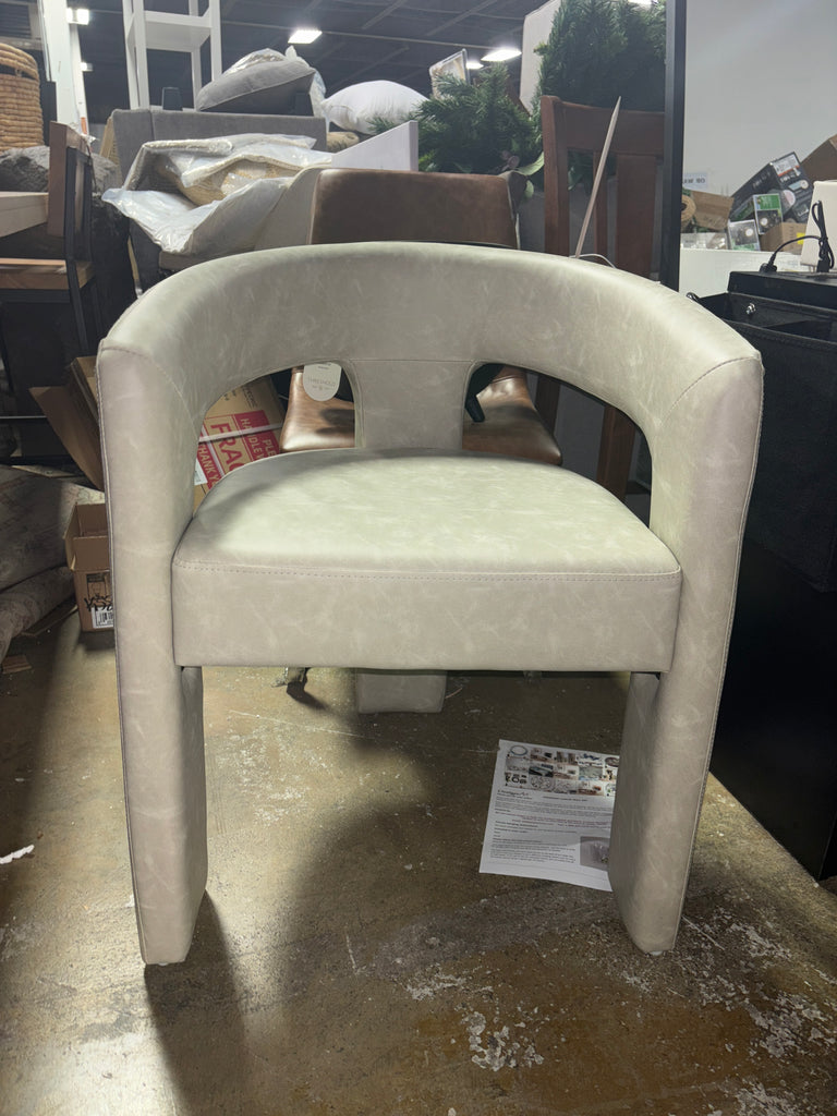 Upholstered Faux Leather Dining Arm Chair Barrel Dining Chair with Solid Back SHOWROOM ITEM